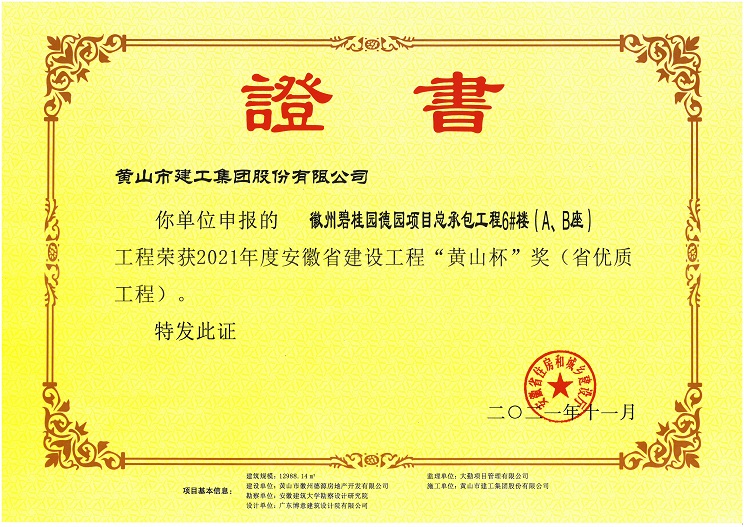 由黃山建工集團(tuán)承建的徽州區(qū)碧桂園德園項(xiàng)目總承包工程6#樓(A、B座) 工程榮獲安徽省工程質(zhì)量最高獎“黃山杯”獎。該工程在開工伊始,項(xiàng)目部就制訂了創(chuàng)優(yōu)目標(biāo),嚴(yán)格過程控制,建立健全項(xiàng)目質(zhì)量管理體系,狠抓現(xiàn)場施工管理,把好施工過程質(zhì)量控制關(guān),為創(chuàng)精品工程打下堅(jiān)實(shí)的基礎(chǔ)。